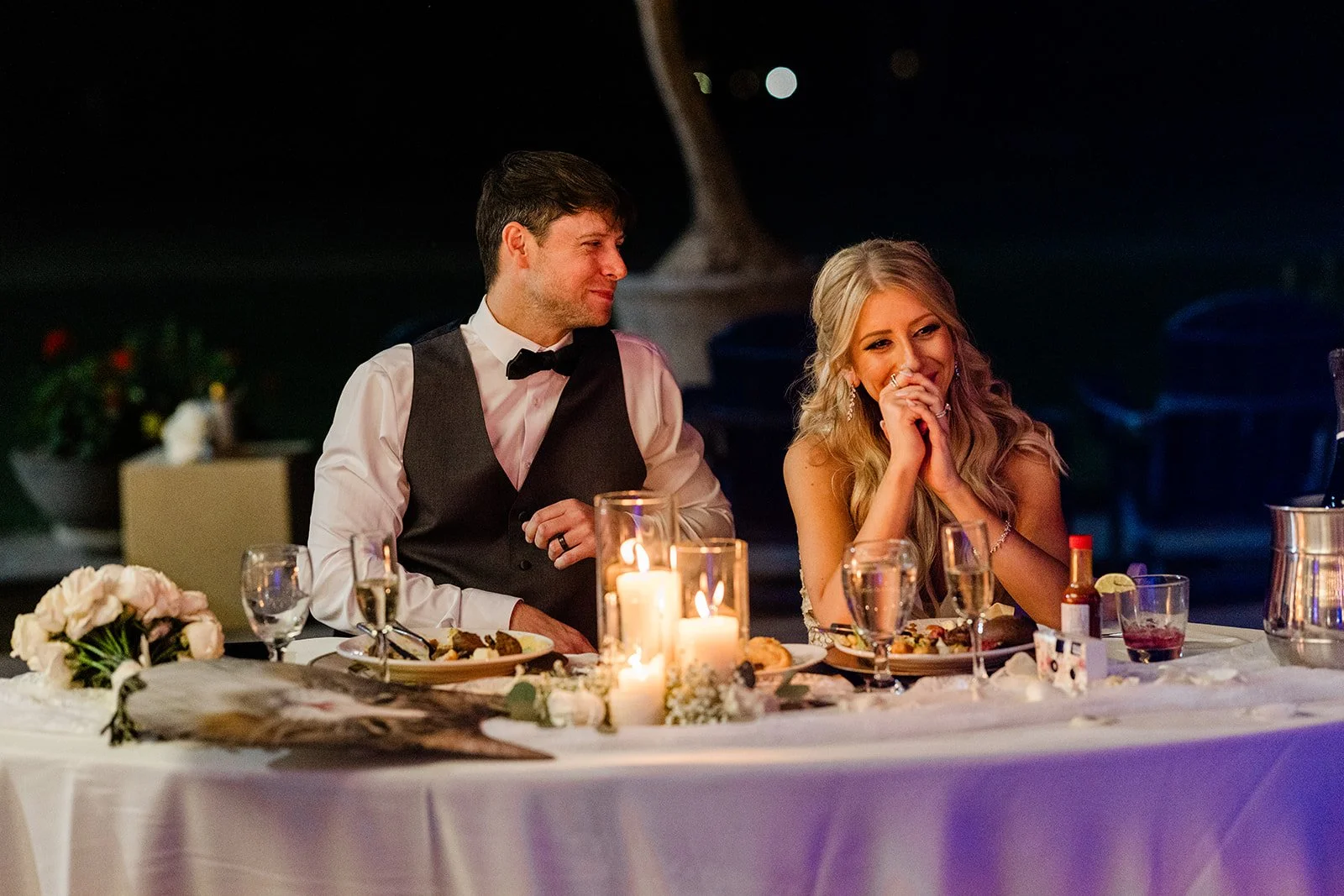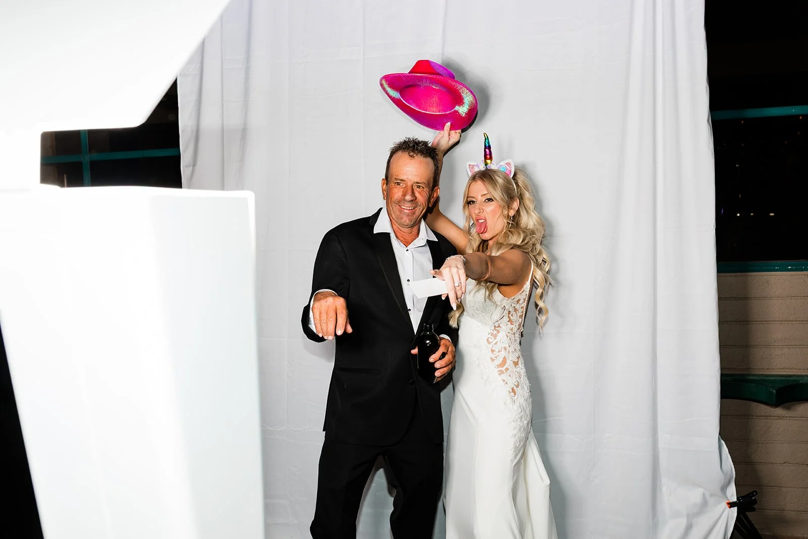 The newlyweds entered their reception ready to celebrate, and the energy never dipped for the rest of the night. The photo booth was a nonstop hit, drawing in both the couple and their guests for countless laughs and memorable snapshots. Later in the evening, Ashley and Nick snuck away for some quiet moments—and a few bites of cake—for late-night photos. In true Nick fashion, he even had to swoop in and save Ashley from an unexpected run-in with the sprinklers.